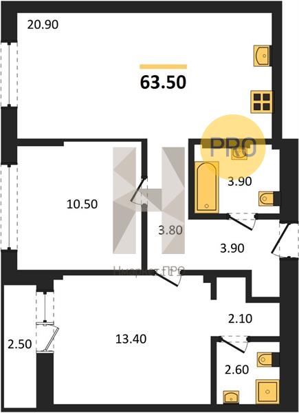 Квартира: 2 к 63,50 кв.м., 7 этаж в комплексе Квартал Депо, 7 очередь, корп.7, сдача: 2кв. , этажей: 16, адрес Екатеринбург г., Таватуйская ул., , Застройщик: Брусника.