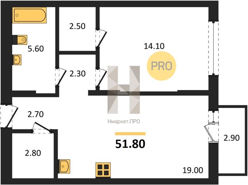 Квартира: 1 к 51,80 кв.м., 8 этаж в комплексе Квартал Депо, 7 очередь, корп.7, сдача: 2кв. , этажей: 16, адрес Екатеринбург г., Таватуйская ул., , Застройщик: Брусника.