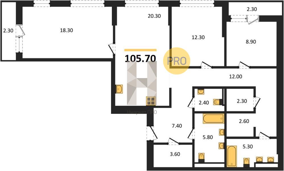 | Общая площадь: | 105.70 м2 |