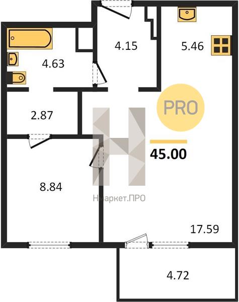 Квартира: 1 к 44,70 кв.м., 22 этаж в комплексе Rauta, 2 очередь, корп.2, сдача: 2кв. , этажей: 22, адрес Екатеринбург г., Таватуйская ул., д. 14а/2, Застройщик: ГК ЭТАЛОН.