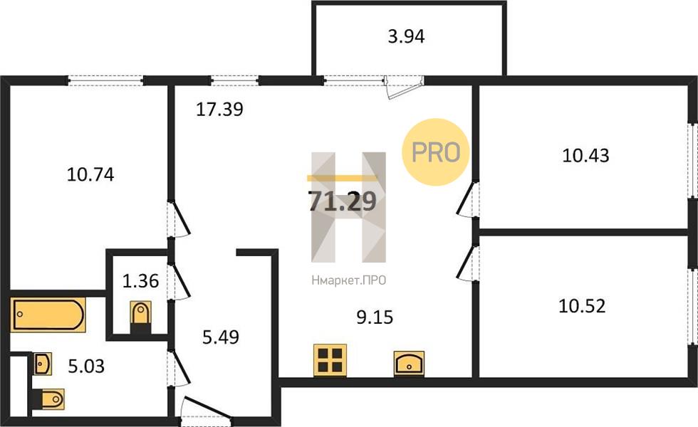 | Общая площадь: | 71.00 м2 |