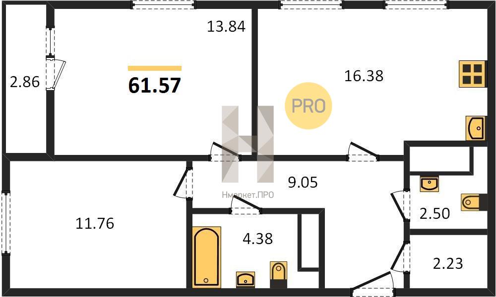 Квартира: 2 к 61,10 кв.м., 12 этаж в комплексе Rauta, 3 очередь, корп.4, сдача: 3кв. , этажей: 25, адрес Екатеринбург г., Таватуйская ул., д. 14а/3, Застройщик: ГК ЭТАЛОН.