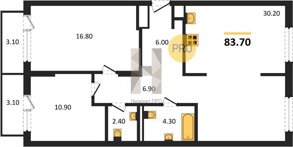 Квартира: 2 к 83,70 кв.м., 9 этаж в комплексе Квартал Депо, 4 очередь, корп.4, сдача: 2кв. , этажей: 9, адрес Екатеринбург г., Таватуйская ул., д. 4, Застройщик: Брусника.