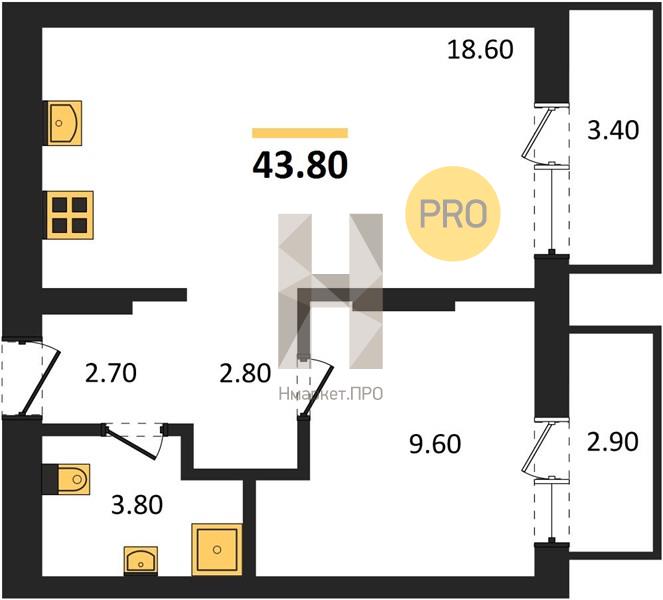 | Жилая площадь: | 9.60 м2 |