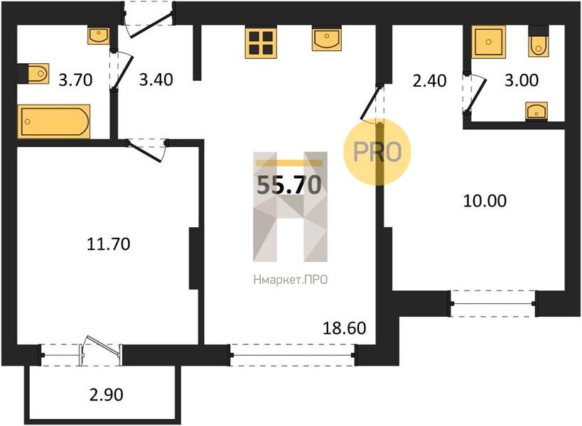Квартира: 2 к 55,70 кв.м., 7 этаж в комплексе Квартал Депо, 4 очередь, корп.4, сдача: 2кв. , этажей: 9, адрес Екатеринбург г., Таватуйская ул., д. 4, Застройщик: Брусника.