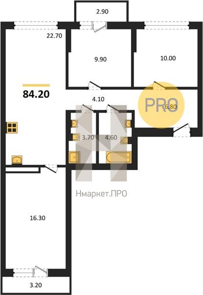 Квартира: 3 к 84,20 кв.м., 8 этаж в комплексе Квартал Депо, 4 очередь, корп.4, сдача: 2кв. , этажей: 9, адрес Екатеринбург г., Таватуйская ул., д. 4, Застройщик: Брусника.