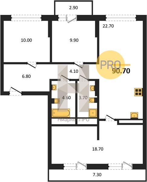 Квартира: 3 к 90,70 кв.м., 9 этаж в комплексе Квартал Депо, 4 очередь, корп.4, сдача: 2кв. , этажей: 9, адрес Екатеринбург г., Таватуйская ул., д. 4, Застройщик: Брусника.