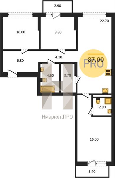 | Площадь кухни: | 22.70 м2 |