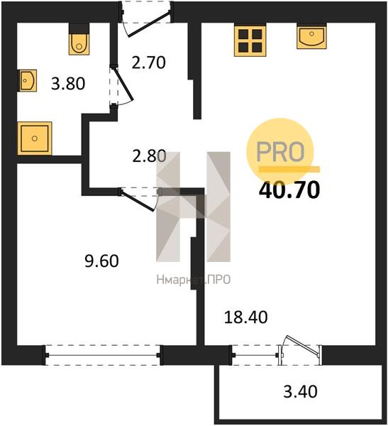 | Общая площадь: | 40.70 м2 |
