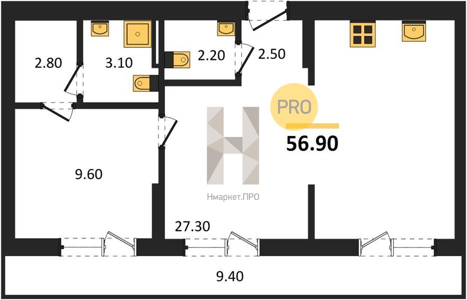 | Общая площадь: | 56.90 м2 |