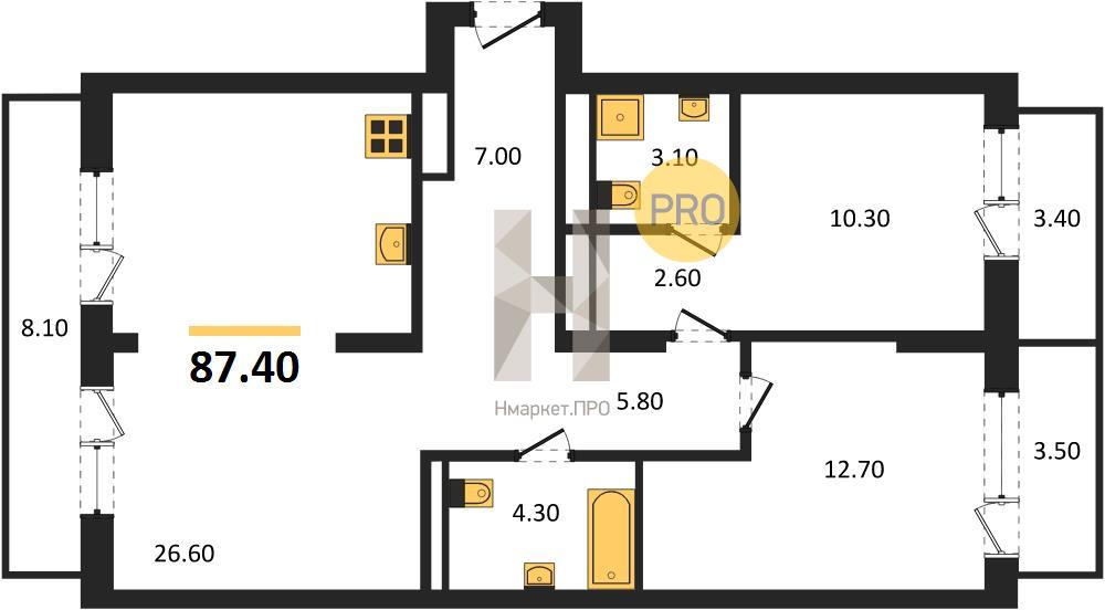 | Общая площадь: | 87.40 м2 |