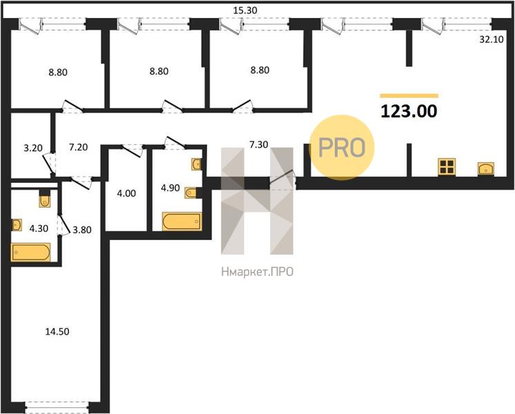 Квартира: 4 к 123,00 кв.м., 7 этаж в комплексе Квартал Депо, 4 очередь, корп.4, сдача: 2кв. , этажей: 9, адрес Екатеринбург г., Таватуйская ул., д. 4, Застройщик: Брусника.