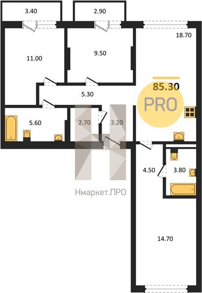 | Общая площадь: | 85.30 м2 |