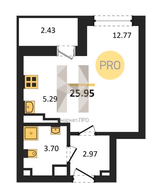 Студия: 25,95 кв.м., 15 этаж в комплексе Мохито, 2 очередь, корп.3, сдача: 4кв. , этажей: 24, адрес Екатеринбург г., Тенистая ул., д. 24/3, Застройщик: Стройтэк.