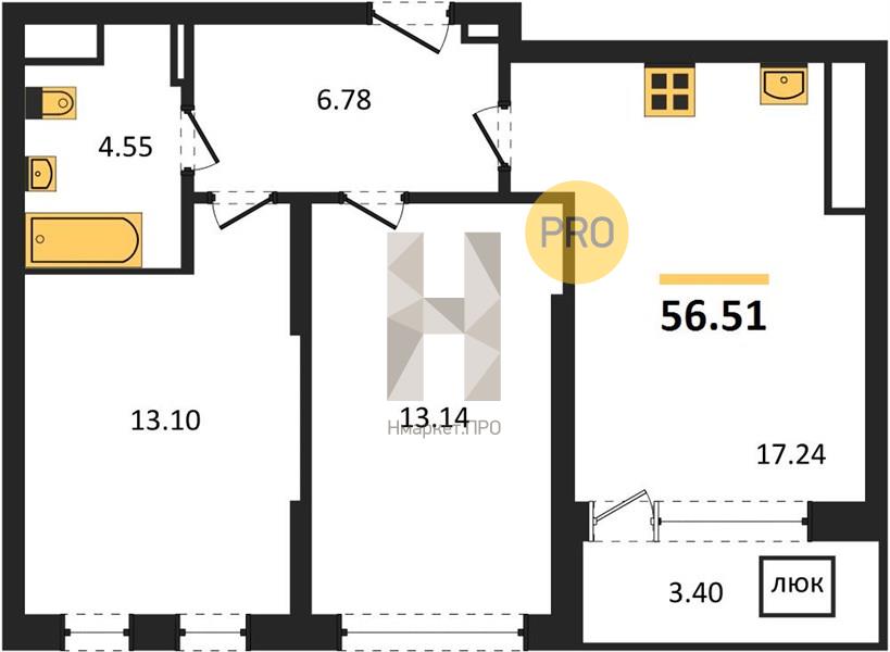 Квартира: 2 к 56,51 кв.м., 24 этаж в комплексе Мохито, 2 очередь, корп.3, сдача: 4кв. , этажей: 24, адрес Екатеринбург г., Тенистая ул., д. 24/3, Застройщик: Стройтэк.