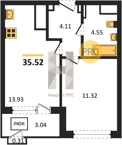 Квартира: 1 к 35,52 кв.м., 24 этаж в комплексе Мохито, 2 очередь, корп.3, сдача: 4кв. , этажей: 24, адрес Екатеринбург г., Тенистая ул., д. 24/3, Застройщик: Стройтэк.