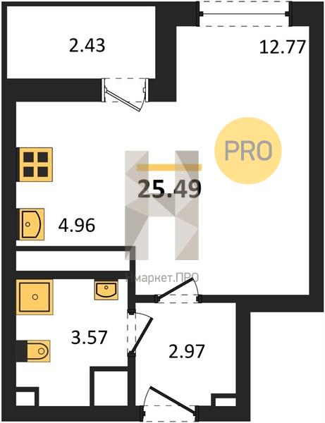 | Общая площадь: | 25.49 м2 |