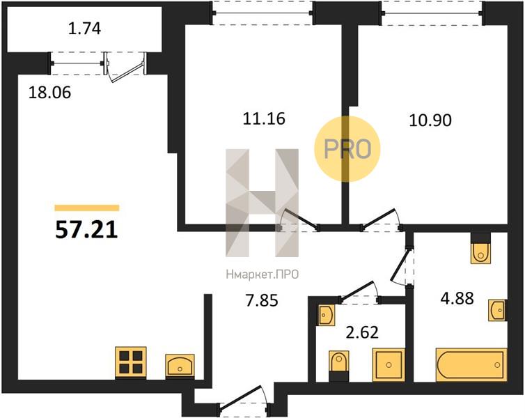 | Общая площадь: | 57.21 м2 |