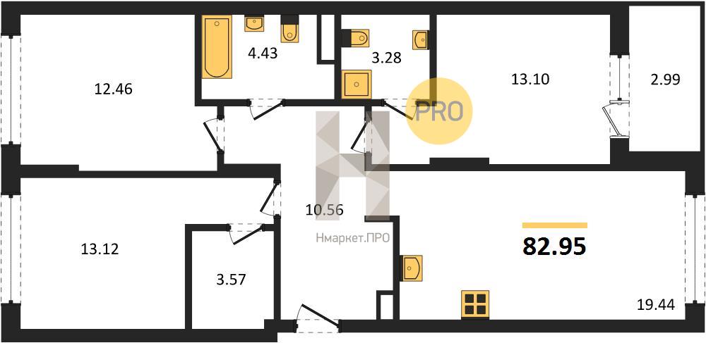 Квартира: 3 к 82,95 кв.м., 4 этаж в комплексе Vitamin-квартал на Титова, 1 очередь, корп.1 (1,2,3 секции), сдача: 4кв. , этажей: 27, адрес Екатеринбург г., Титова ул., , Застройщик: СЗ Витамин Девелопмент.