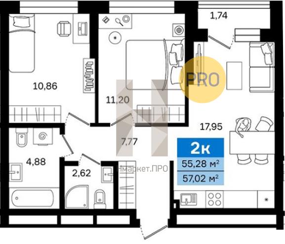 | Общая площадь: | 57.02 м2 |