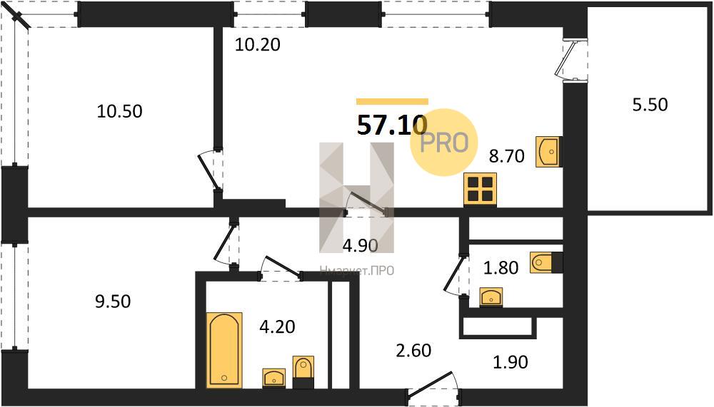 Квартира: 2 к 57,20 кв.м., 23 этаж в комплексе Лето на Титова, 1 очередь, корп.3, сдача: 4кв. , этажей: 27, адрес Екатеринбург г., Титова ул., , Застройщик: Лето Девелопмент.