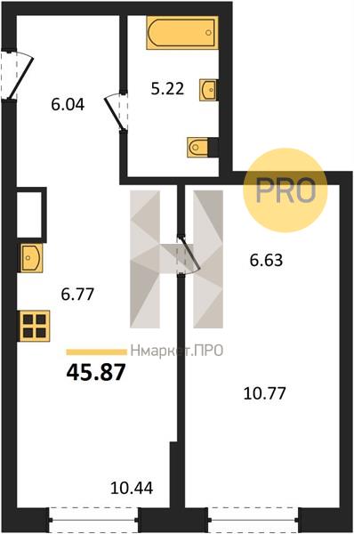 Квартира: 1 к 45,94 кв.м., 17 этаж в комплексе Атлас Юник, 1 очередь, корп.С3, сдача: 2кв. , этажей: 28, адрес Екатеринбург г., Титова ул., , Застройщик: ATLAS Development.