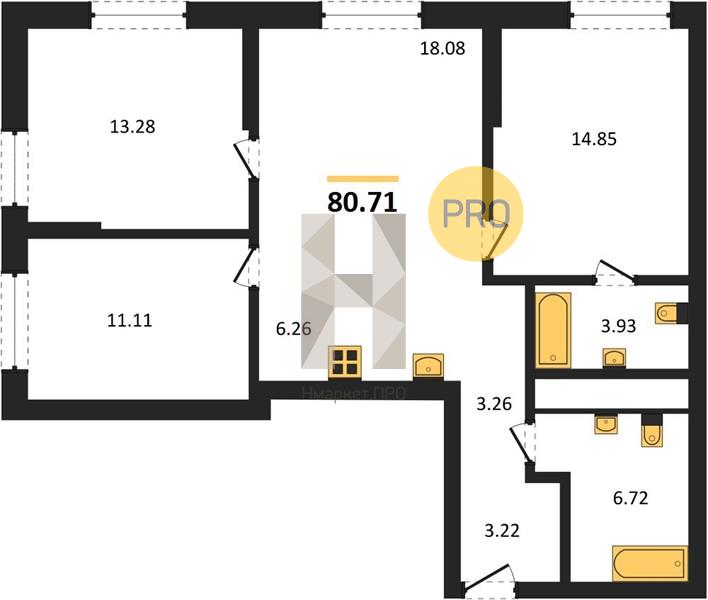 Квартира: 3 к 80,76 кв.м., 2 этаж в комплексе Атлас Юник, 1 очередь, корп.С3, сдача: 2кв. , этажей: 28, адрес Екатеринбург г., Титова ул., , Застройщик: ATLAS Development.