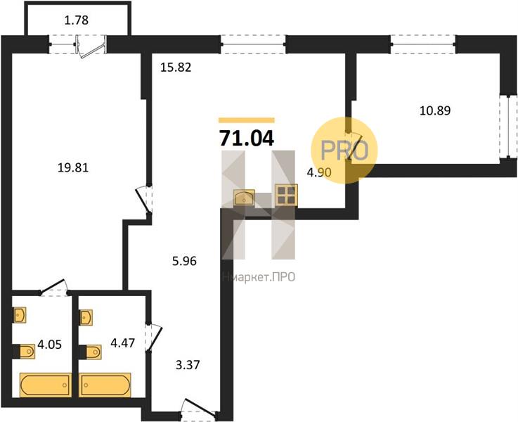 Квартира: 2 к 71,03 кв.м., 25 этаж в комплексе Атлас Юник, 1 очередь, корп.С3, сдача: 2кв. , этажей: 28, адрес Екатеринбург г., Титова ул., , Застройщик: ATLAS Development.