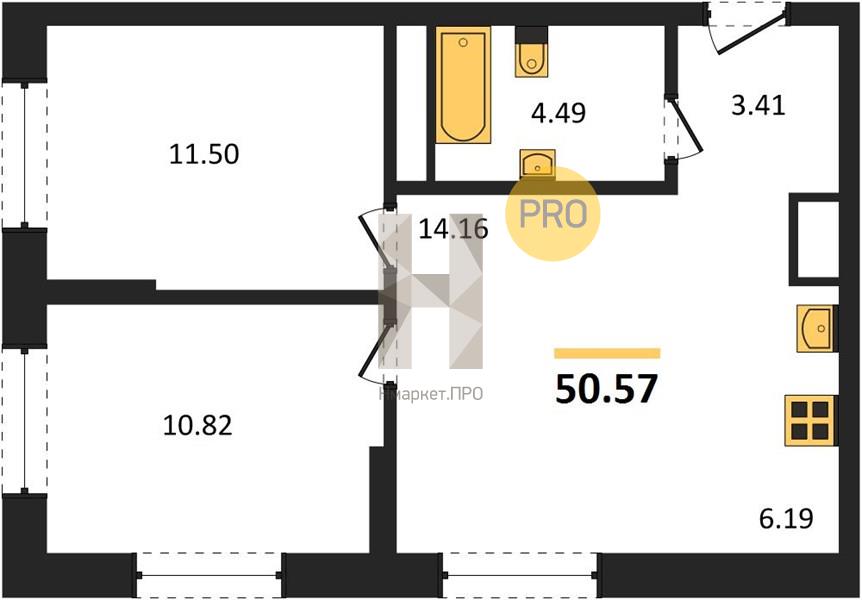 Квартира: 2 к 50,57 кв.м., 27 этаж в комплексе Атлас Юник, 1 очередь, корп.С3, сдача: 2кв. , этажей: 28, адрес Екатеринбург г., Титова ул., , Застройщик: ATLAS Development.
