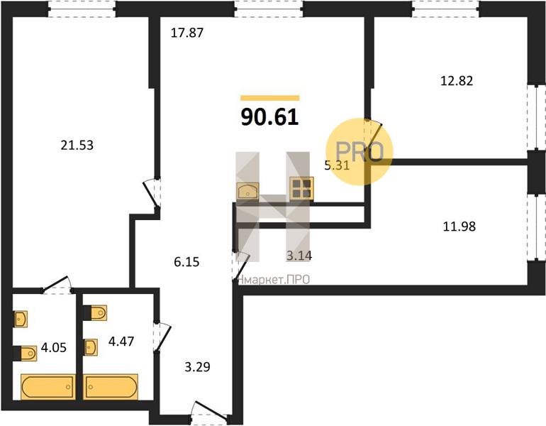 Квартира: 3 к 90,62 кв.м., 3 этаж в комплексе Атлас Юник, 1 очередь, корп.С3, сдача: 2кв. , этажей: 28, адрес Екатеринбург г., Титова ул., , Застройщик: ATLAS Development.