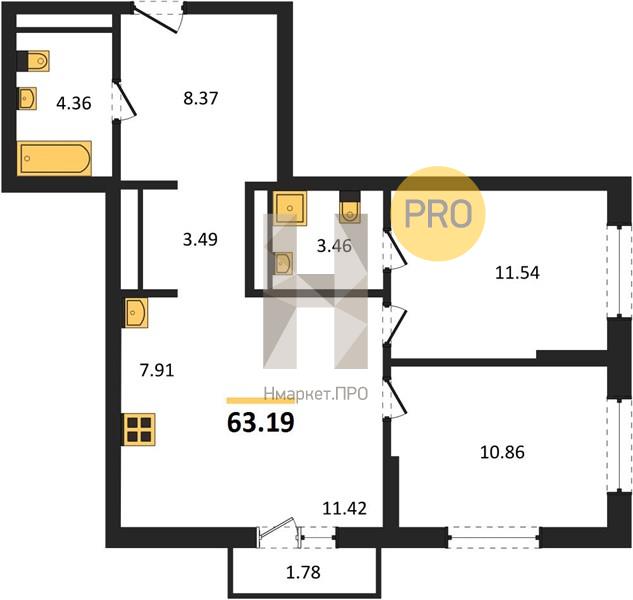 Квартира: 2 к 63,18 кв.м., 4 этаж в комплексе Атлас Юник, 1 очередь, корп.С3, сдача: 2кв. , этажей: 28, адрес Екатеринбург г., Титова ул., , Застройщик: ATLAS Development.