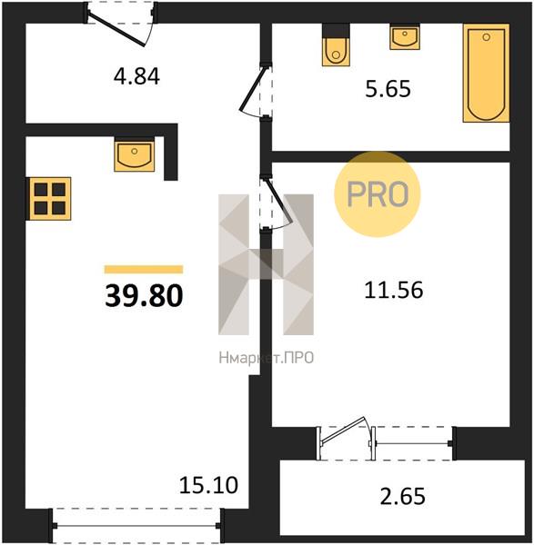 Квартира: 1 к 39,80 кв.м., 5 этаж в комплексе Vitamin-квартал на Титова, 1 очередь, корп.1 (1,2,3 секции), сдача: 4кв. , этажей: 27, адрес Екатеринбург г., Титова ул., , Застройщик: СЗ Витамин Девелопмент.