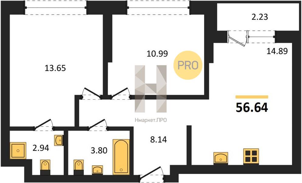 | Общая площадь: | 56.64 м2 |