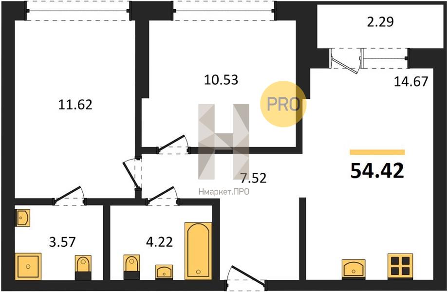 | Общая площадь: | 54.42 м2 |