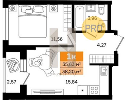 Квартира: 1 к 38,20 кв.м., 5 этаж в комплексе Vitamin-квартал на Титова, 1 очередь, корп.1 (8 секция), сдача: 4кв. , этажей: 27, адрес Екатеринбург г., Титова ул., , Застройщик: СЗ Витамин Девелопмент.