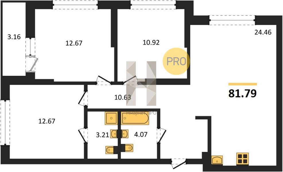 Квартира: 3 к 81,79 кв.м., 6 этаж в комплексе Vitamin-квартал на Титова, 1 очередь, корп.1 (8 секция), сдача: 4кв. , этажей: 27, адрес Екатеринбург г., Титова ул., , Застройщик: СЗ Витамин Девелопмент.