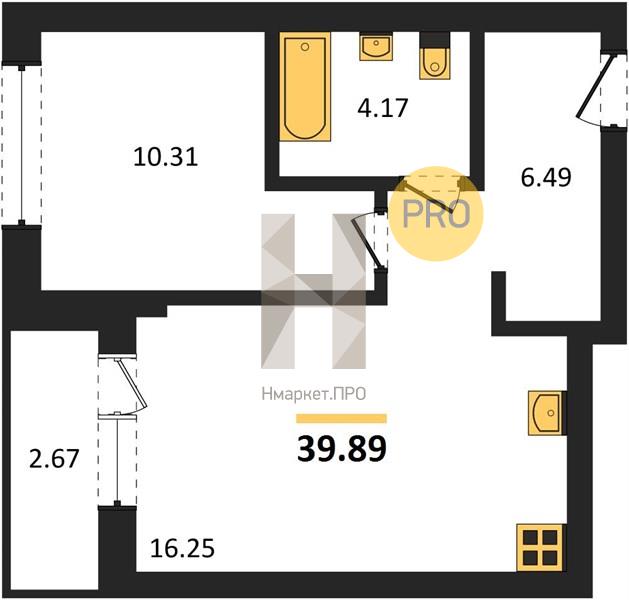 Квартира: 1 к 39,89 кв.м., 5 этаж в комплексе Vitamin-квартал на Титова, 1 очередь, корп.1 (1,2,3 секции), сдача: 4кв. , этажей: 27, адрес Екатеринбург г., Титова ул., , Застройщик: СЗ Витамин Девелопмент.