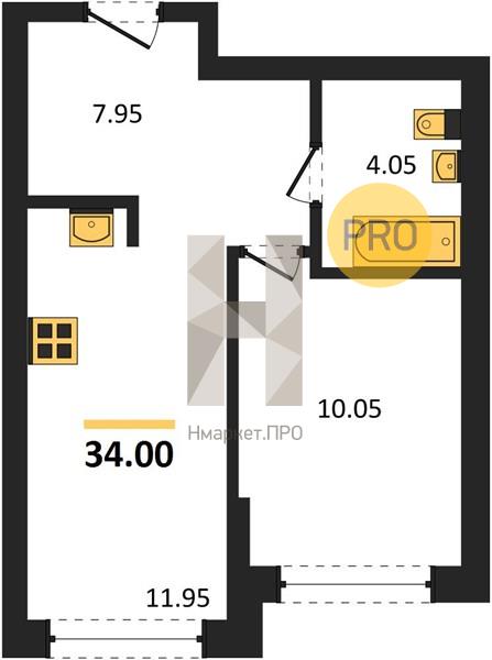 Квартира: 1 к 34,00 кв.м., 5 этаж в комплексе Vitamin-квартал на Титова, 1 очередь, корп.1 (1,2,3 секции), сдача: 4кв. , этажей: 27, адрес Екатеринбург г., Титова ул., , Застройщик: СЗ Витамин Девелопмент.