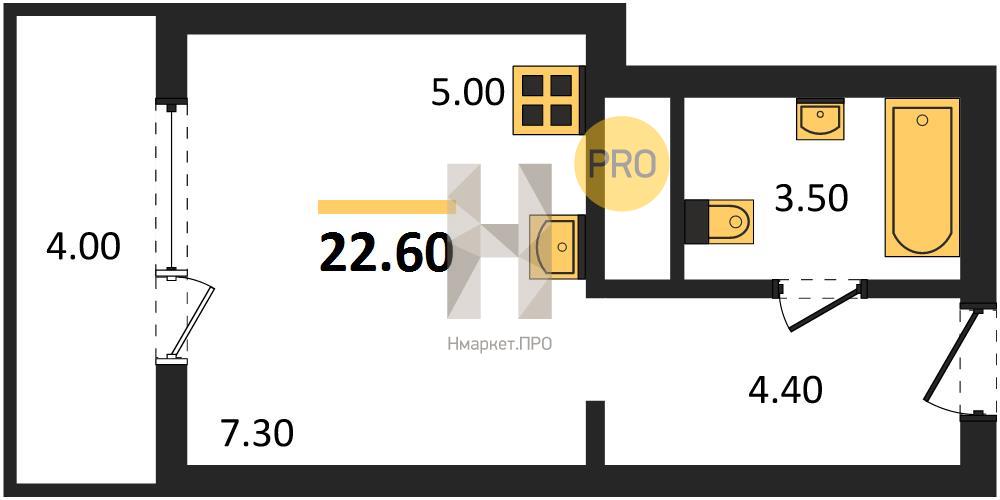 | Общая площадь: | 22.60 м2 |