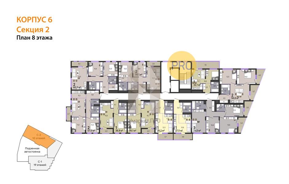 Квартира: 2 к 61,60 кв.м., 8 этаж в комплексе Малевич, 1 очередь, корп.6, сдача: 3кв. , этажей: 19, адрес Екатеринбург г., Трамвайный пер., д. 6, Застройщик: PRINZIP недвижимость.