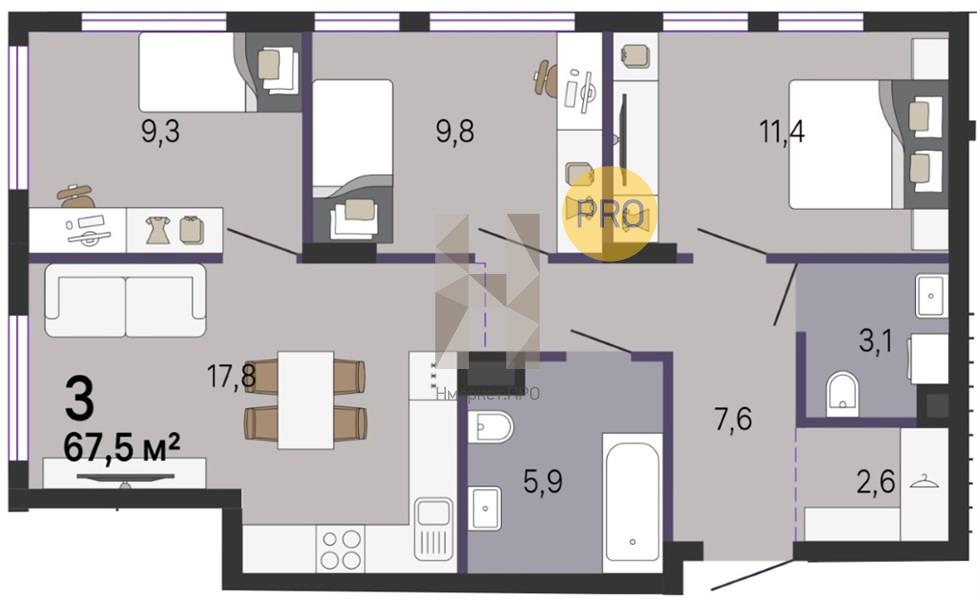 Квартира: 3 к 68,50 кв.м., 1 этаж в комплексе Малевич, 1 очередь, корп.6, сдача: 3кв. , этажей: 19, адрес Екатеринбург г., Трамвайный пер., д. 6, Застройщик: PRINZIP недвижимость.