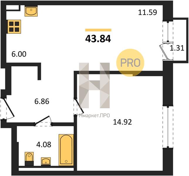Квартира: 1 к 42,80 кв.м., 12 этаж в комплексе Квартал Ауруум, 1 очередь, корп.1, сдача: 4кв. , этажей: 31, адрес Екатеринбург г., Учителей ул., , Застройщик: ГК Самолет.