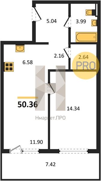 | Жилая площадь: | 14.34 м2 |