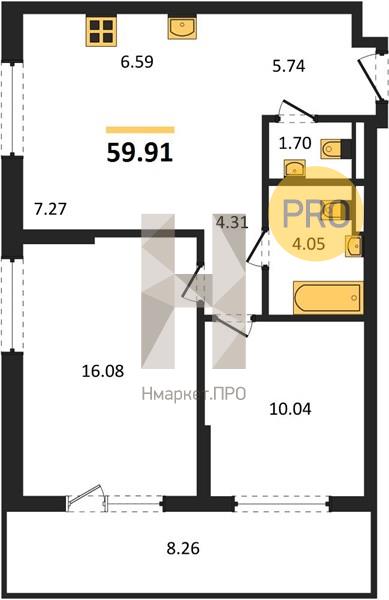 Квартира: 2 к 58,30 кв.м., 4 этаж в комплексе Квартал Ауруум, 1 очередь, корп.1, сдача: 4кв. , этажей: 31, адрес Екатеринбург г., Учителей ул., , Застройщик: ГК Самолет.