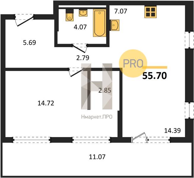 | Общая площадь: | 55.70 м2 |