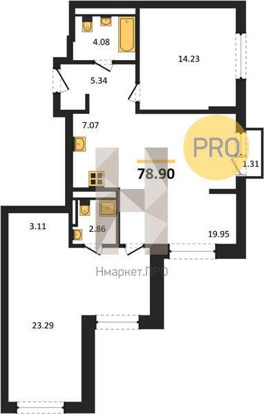 Квартира: 2 к 78,90 кв.м., 31 этаж в комплексе Квартал Ауруум, 1 очередь, корп.1, сдача: 4кв. , этажей: 31, адрес Екатеринбург г., Учителей ул., , Застройщик: ГК Самолет.