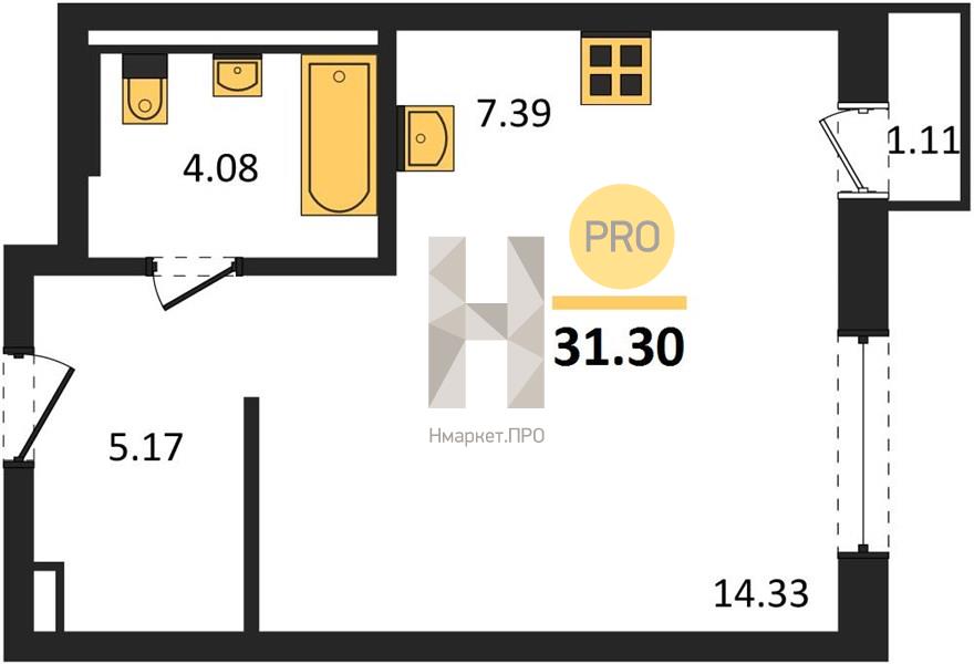 Студия: 31,00 кв.м., 14 этаж в комплексе Квартал Ауруум, 1 очередь, корп.2, сдача: 4кв. , этажей: 24, адрес Екатеринбург г., Учителей ул., , Застройщик: ГК Самолет.