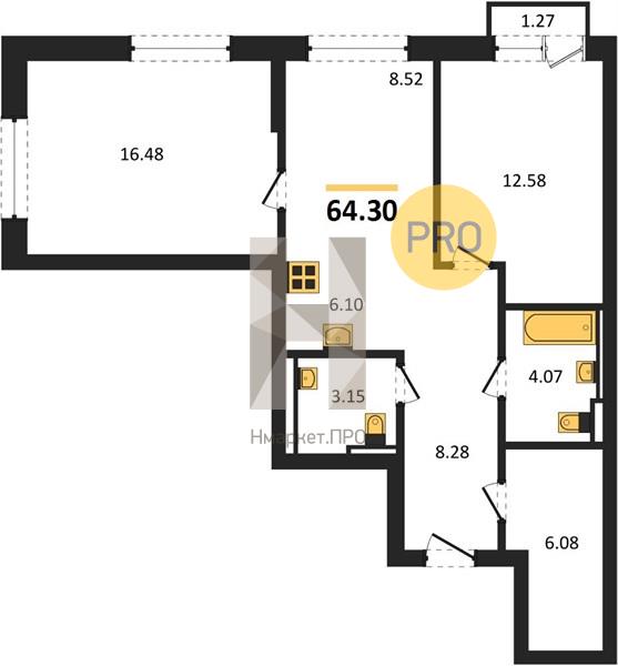 | Общая площадь: | 64.30 м2 |