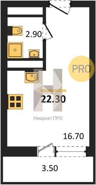 Студия: 22,30 кв.м., 16 этаж в комплексе Основинские кварталы, 1 очередь, корп.1.1-1.3, сдача: 1кв. , этажей: 25, адрес Екатеринбург г., Учителей ул., д. 33, Застройщик: TEN девелопмент.