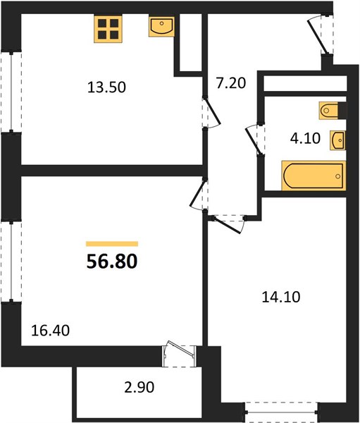 | Общая площадь: | 56.80 м2 |
